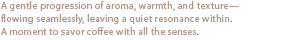 一杯のコーヒーがもたらすのは、記憶に刻まれるひととき。特別な時間が、香りとともに心に溶け込んでいくのを感じじてください。