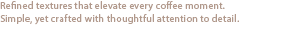 一杯のコーヒーがもたらすのは、記憶に刻まれるひととき。特別な時間が、香りとともに心に溶け込んでいくのを感じじてください。